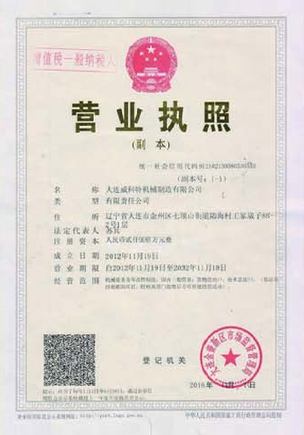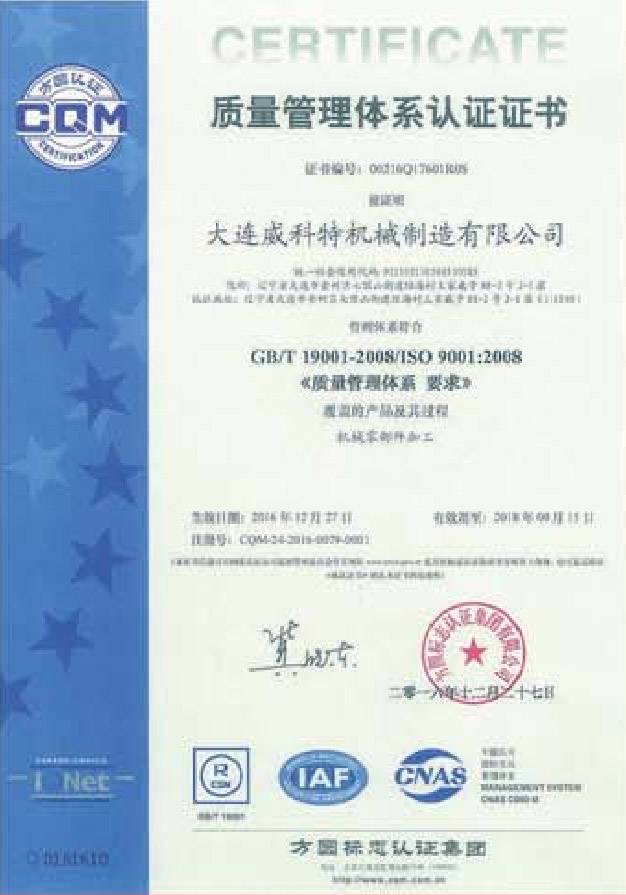 大連威科特成立于2003年,2012年搬遷至大連金州經(jīng)濟(jì)技術(shù)開發(fā)區(qū)。公司注冊(cè)資本2500萬元,占地面積25000m2,辦公地點(diǎn)位于大連開發(fā)區(qū)遼河西路73號(hào)融通大廈。公司現(xiàn)擁有員工68人,中高級(jí)職稱人數(shù)15人,技工30人以上,公司已通過ISO9001:2015質(zhì)量管理體系認(rèn)證,擁有多項(xiàng)專利技術(shù),經(jīng)過多年的發(fā)展,逐漸形成了一支素質(zhì)過硬、制造經(jīng)驗(yàn)豐富的管理、技術(shù)和生產(chǎn)團(tuán)隊(duì),保證了公司的持續(xù)發(fā)展和創(chuàng)新能力。